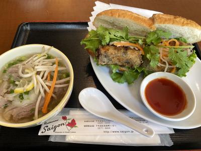 私は自家製揚げ春巻きのバインミーとフォーのセット。フォーは鶏、牛、豚から選択。