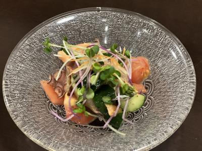 カリッと揚がった春巻きは美味しかったですし、新鮮なパクチーも多目に入っていたのが嬉しい。ピリ辛ソースを付けて更に美味しくいただけました。