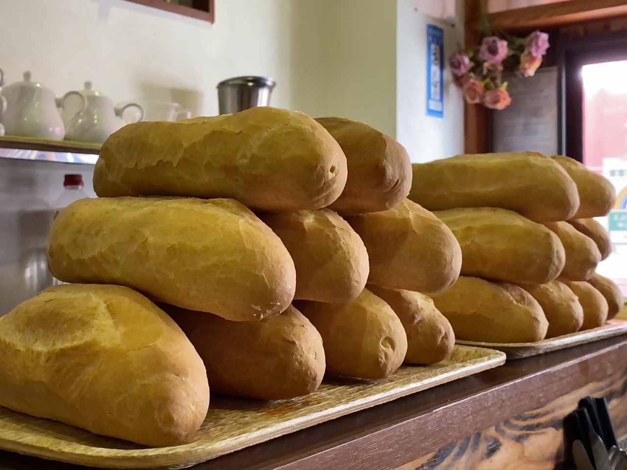 そしてランチを食べ終わると目の前のカウンターにバインミー用のパンが山盛りに置かれていたので、思わずバインミーを一つテイクアウトしてしまいました。