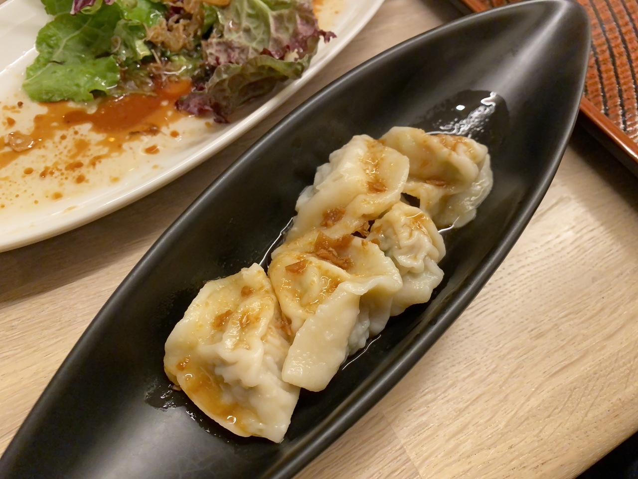 お通しで出されたものはザーサイを梅肉で和えたもの。他にもいただいた水餃子など、こちらもとても美味しかったです。