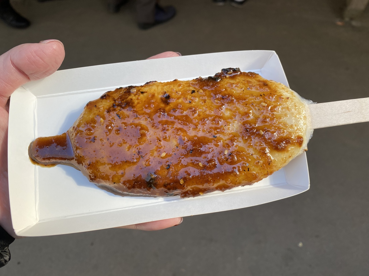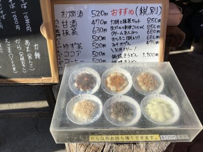 大好きなつきたてのお餅がいただけるので寄ってみました。お餅は6種類。私は大根おろしで絡めてある『から』にしました。大根のピリ辛な部分が程よいくらいに効いていて、お餅はとても柔らかく、美味しいです。