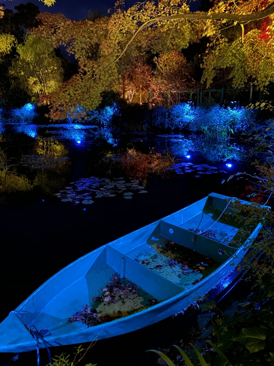 睡蓮が咲く時期が一番綺麗だと思いますが、紅葉し、ライトアップされた秋もまた綺麗でした。