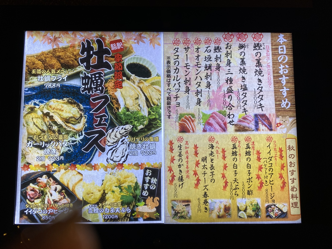 初めての高知。到着が遅いので遅くまで営業しているホテル近くのお店を探して予約を入れて行ってみました。