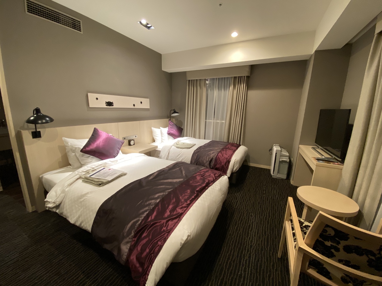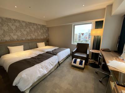 コーナーツインを利用したのでお部屋はとても広く、更にフットマッサージャーあり。疲れた足をもみほぐしてもらえます。また、利用する際に履くための靴下も用意されていました。