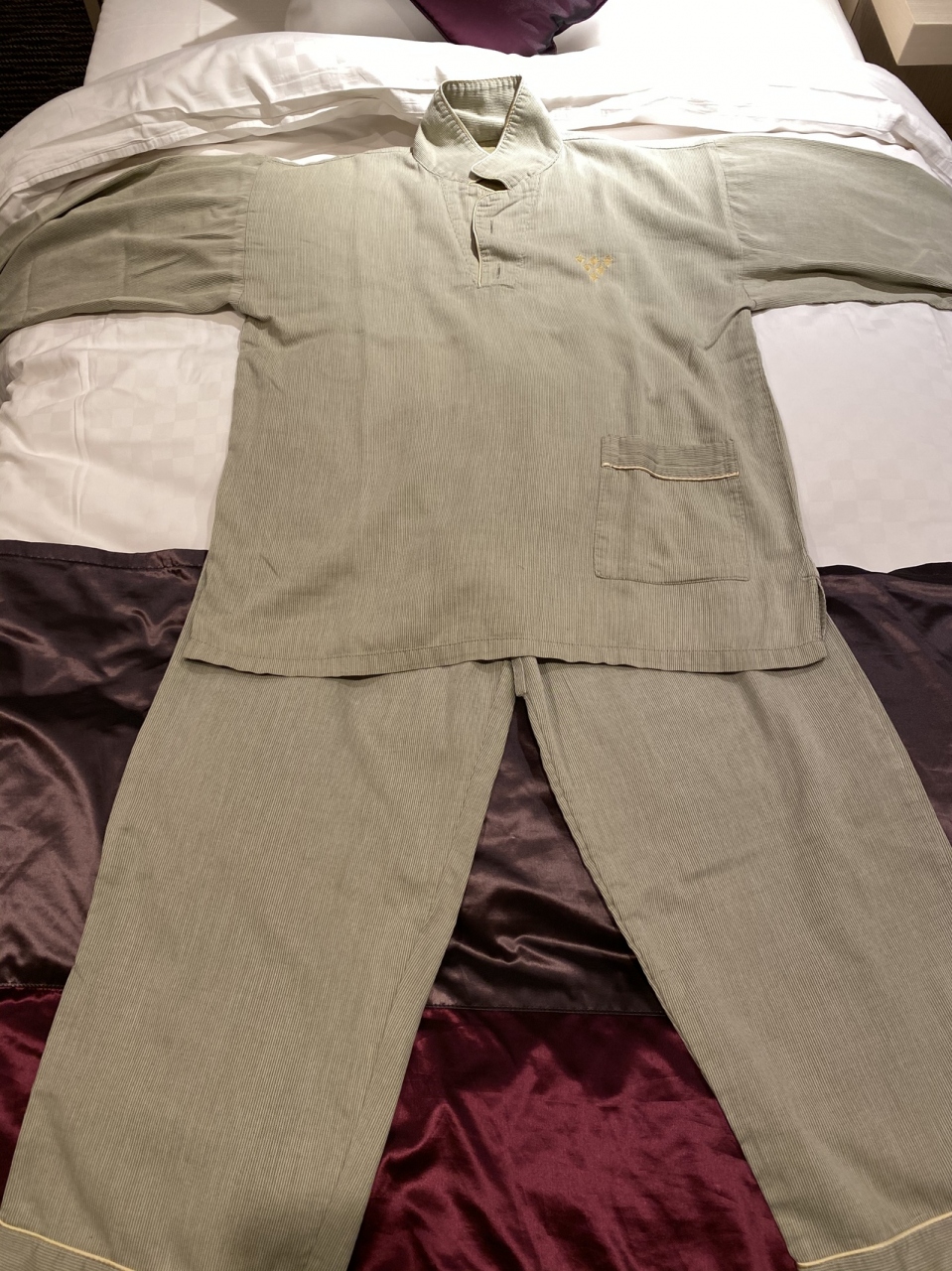 今回は少し広めのスーペリアツイン。お部屋は綺麗で、バス、トイレがセパレートタイプ。十分な広さがありました。ナイトウェアが上下別々のパジャマタイプなのもいいですね。