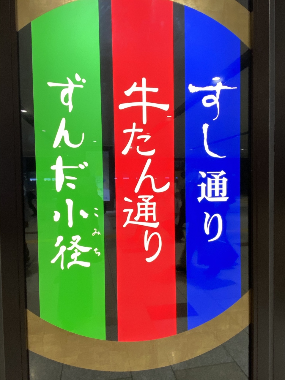 仙台駅構内にあるのでとても便利。その名のとおり、牛たんやさんと、お寿司屋さんが通りの両脇に並んでいて旅行者には良いと思います。