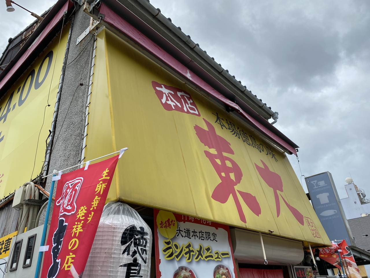 徳島では一度は食べたいと思っていた徳島ラーメン。出発前からこちらへ行こうと思ってましたが、往路の飛行機で隣り合わせた徳島出身の方からオススメのラーメン店を聞いたところ2つのラーメン店を紹介され、そのうちの一つがこの「東大」でした。