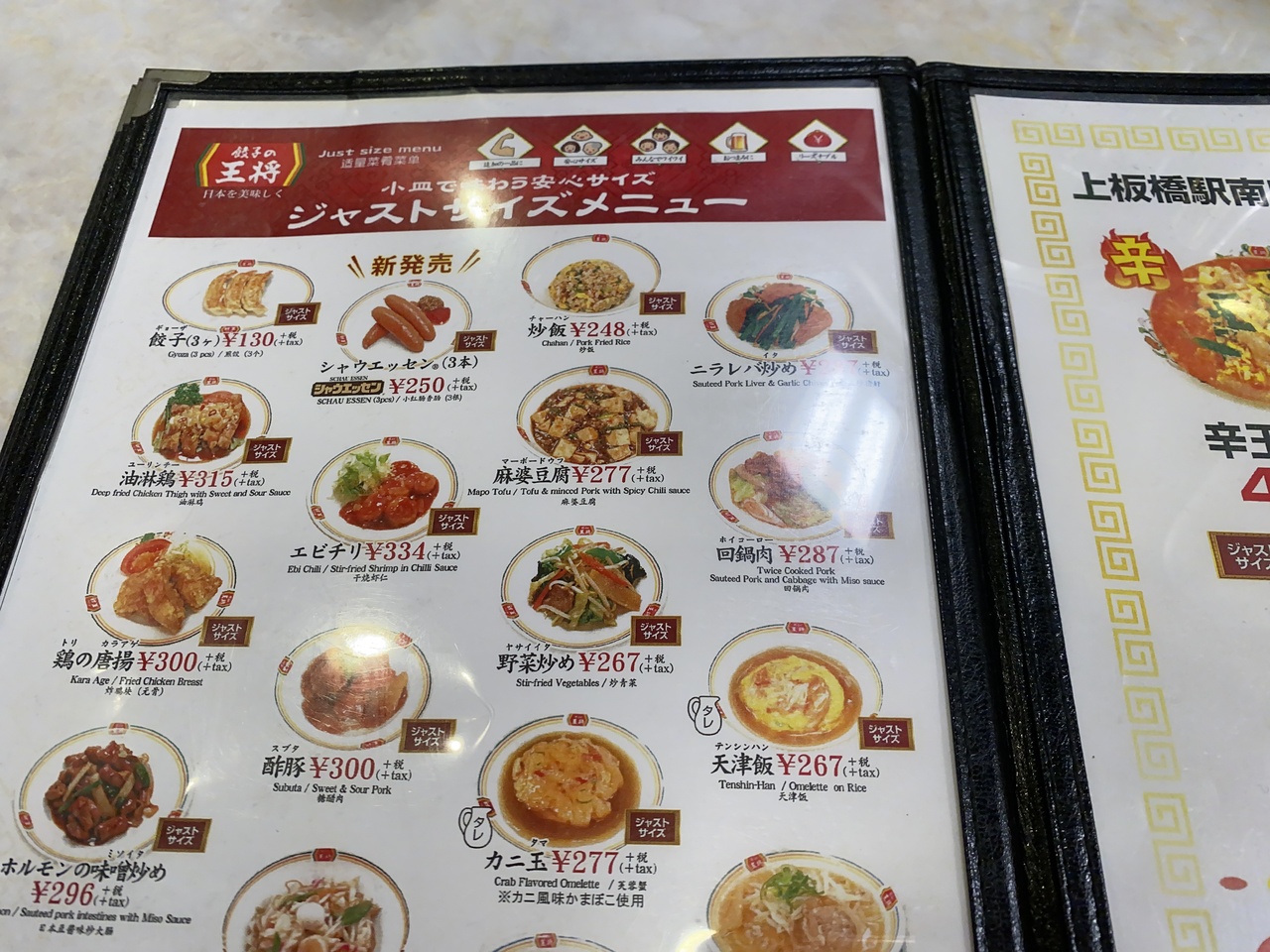 どこにでもあると言える餃子の王将。こちらにある小皿で食べれるジャストサイスメニューが気に入ってます。