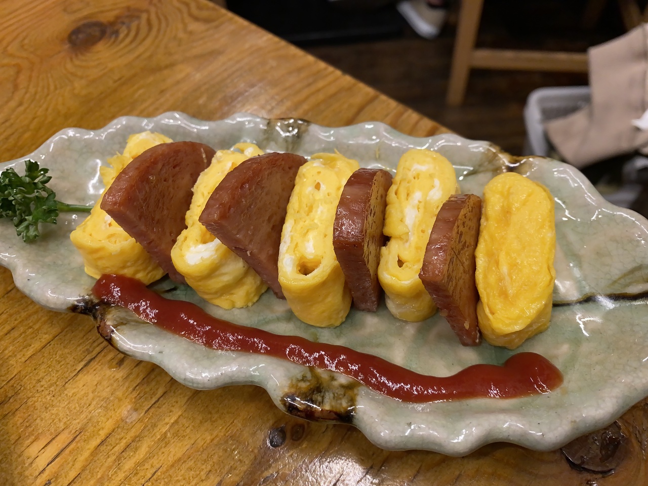 チャンプルーはいくつか種類あり。今回はシーチキンチャンプルーにしました。玉子焼きはスパム付。なかなか美味しいです。