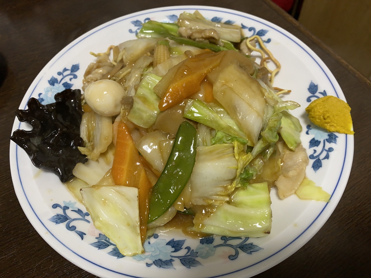 両面焼きと言っても焼かれて硬くなった麺は少なめ。もう少し硬い麺があって方がいいかなとも思えますが、それでも美味しい焼きそばです。