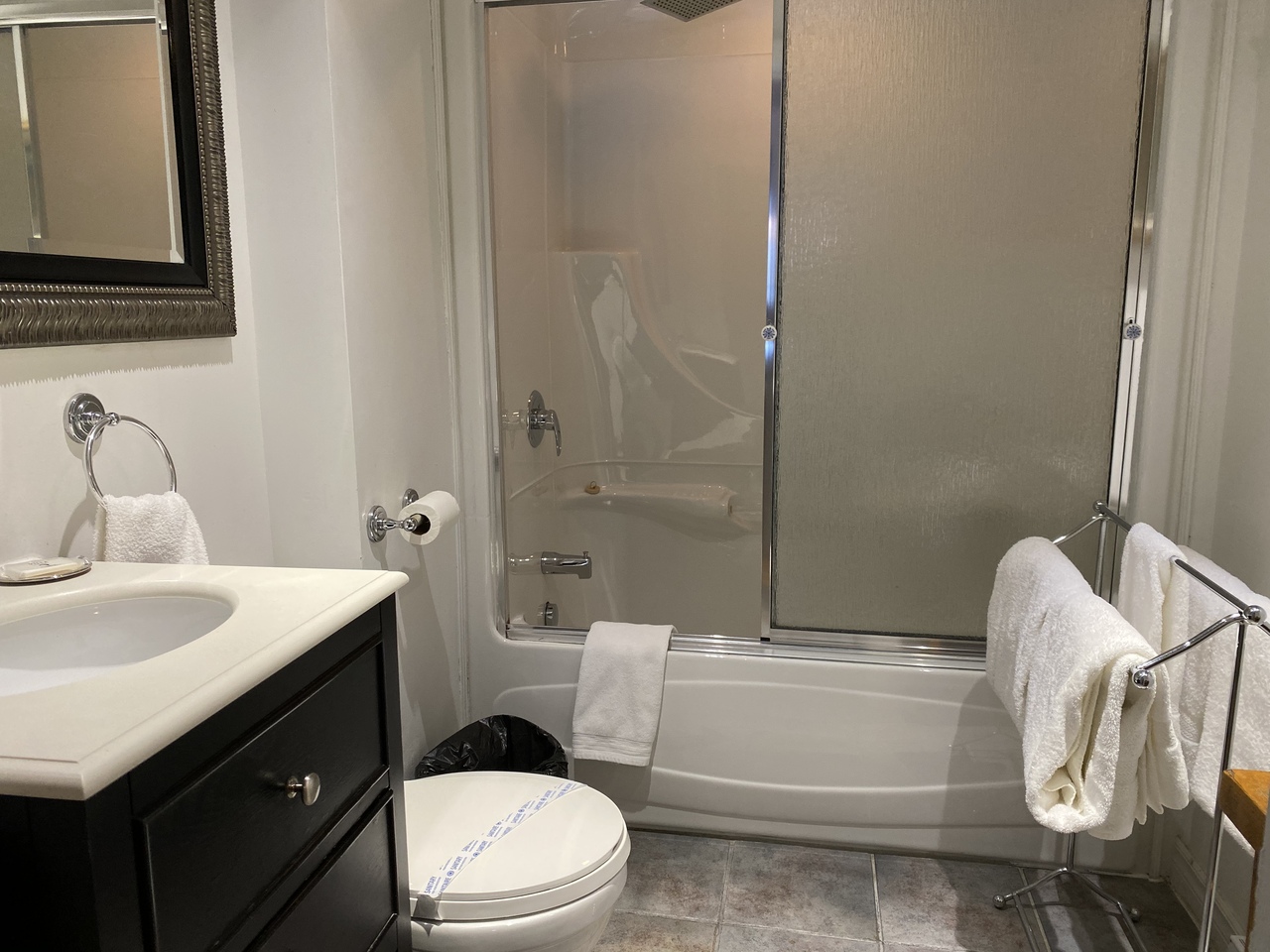 バスタブはシャワーカーテンではなくガラス窓で閉める事が出来るので使いやすかったです。