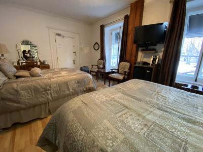 宿泊したこちらのホテルは内装が可愛くて広めのお部屋に大きなベットが2つ、バスタブもあったので決めました。寒いケベックでもバスタブのあるホテルは意外と少ないです。