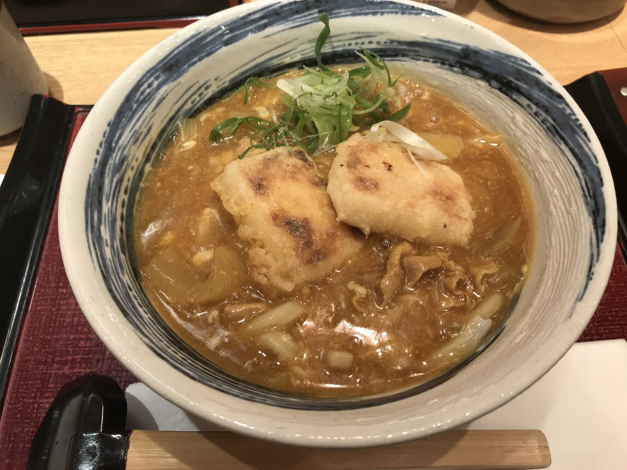 サンシャインレストラン街にある杵屋。ランチに食べた「チーズもち天カレーうどん」は揚げたお餅の天かすにカレーが絡まり美味!それに熱すぎないスープなので食べやすいです。