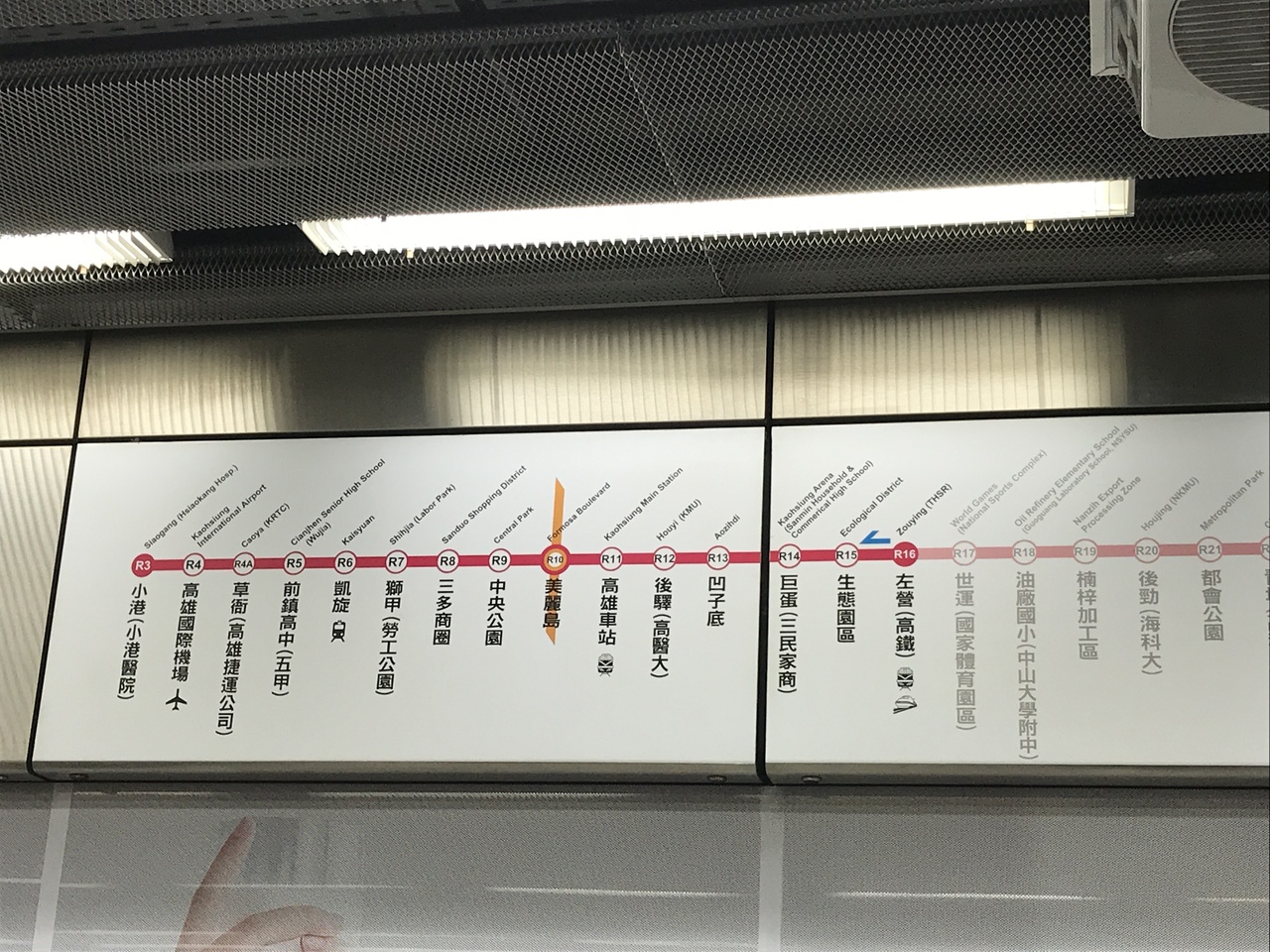 台湾新幹線を利用して高鐵『左営駅』から高雄駅や美麗駅へは地下鉄紅線(レッドライン)左営駅から向かうのが良いと思います。高雄駅へは左営駅から5つです。