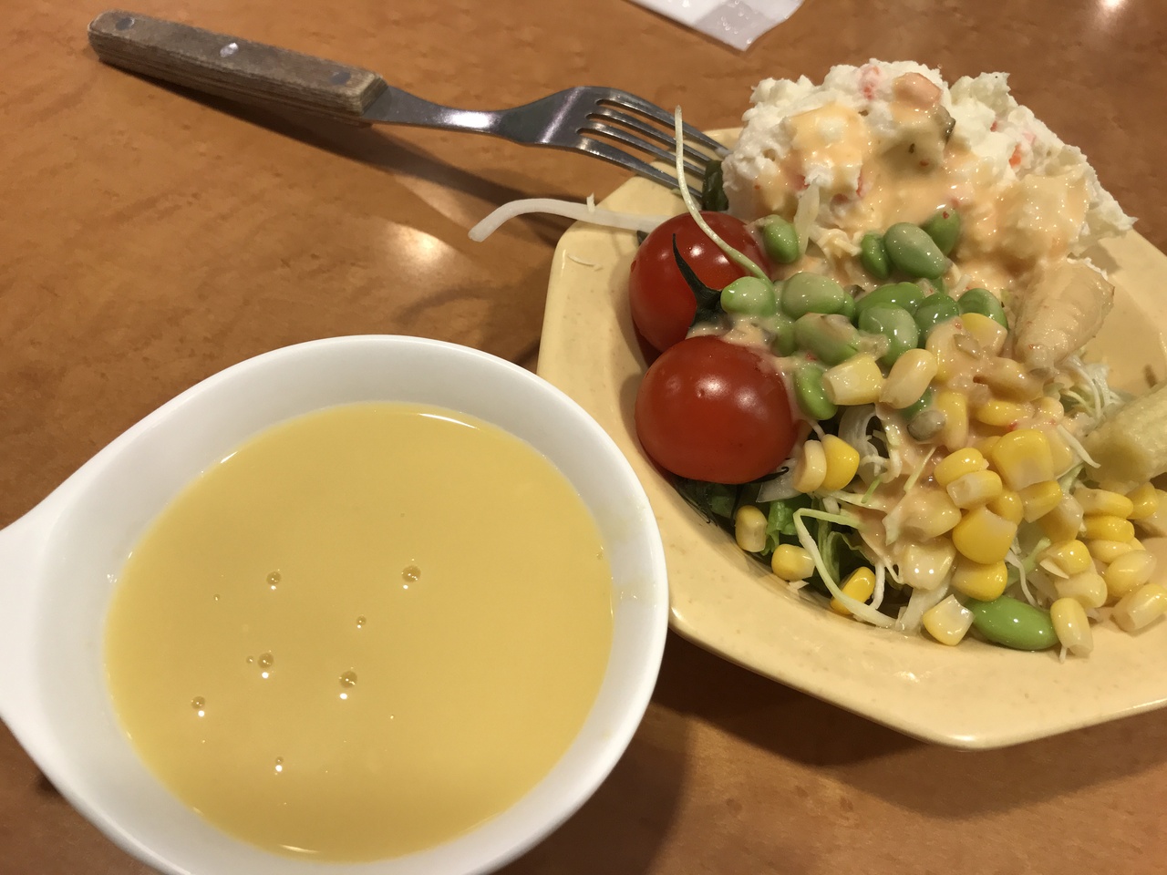 食事は追加料金でセットに出来ますが、セットにするとサラダ、スープ、ライスが食べ放題になります。カレーもあるので食べ過ぎてしまいそうになります。- 旅行時期