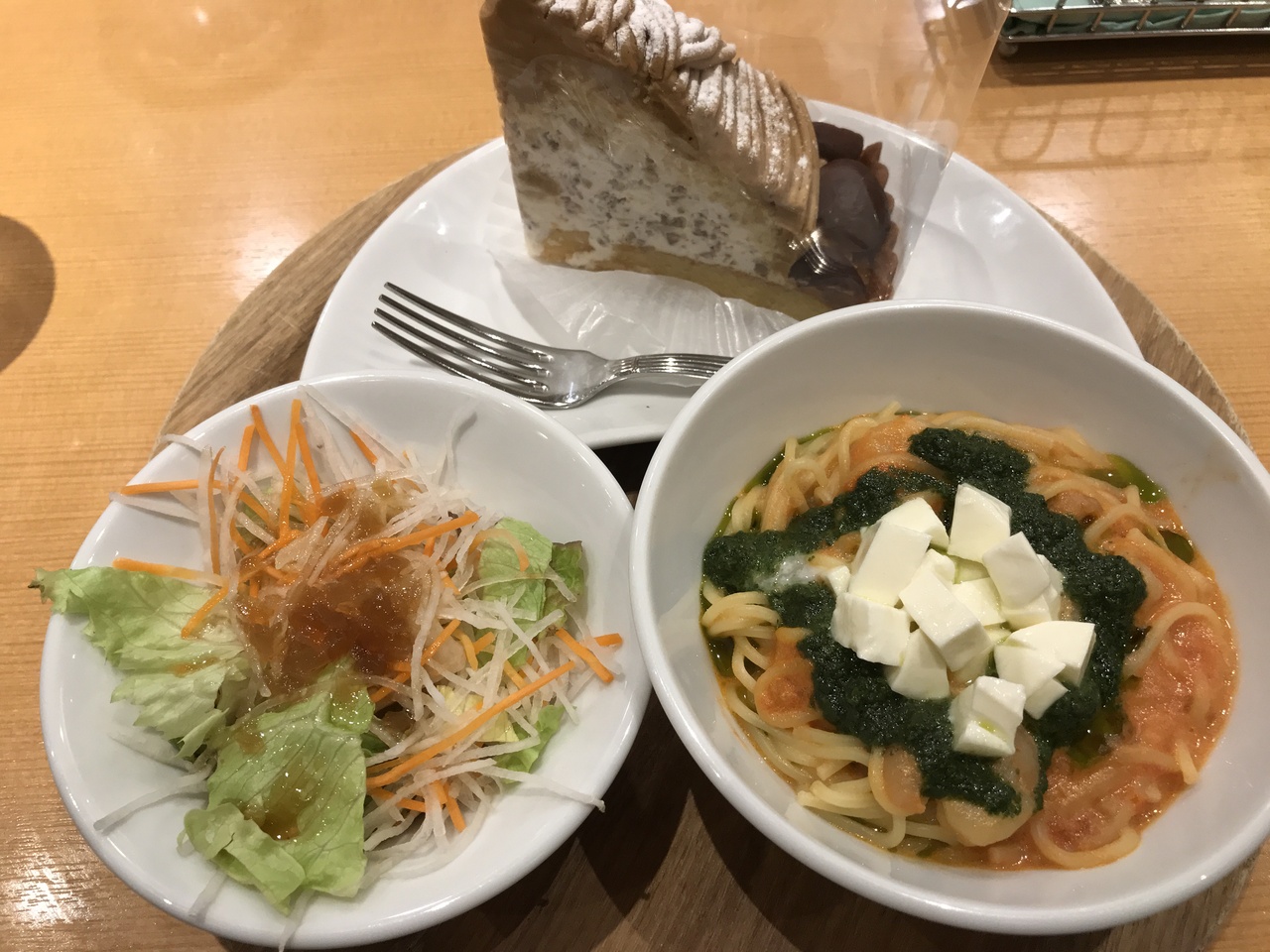 サンシャイン、3階レストラン街にあるパスタとケーキのお店。こちらではランチでもディナーでもパスタとドリンク、それにケーキやサラダなどのセットかあり、パスタやケーキなど好きな物をチョイス出来ます。女性に喜ばれるサービス。店内は明るく、入店されてるのはほとんどが女性です。