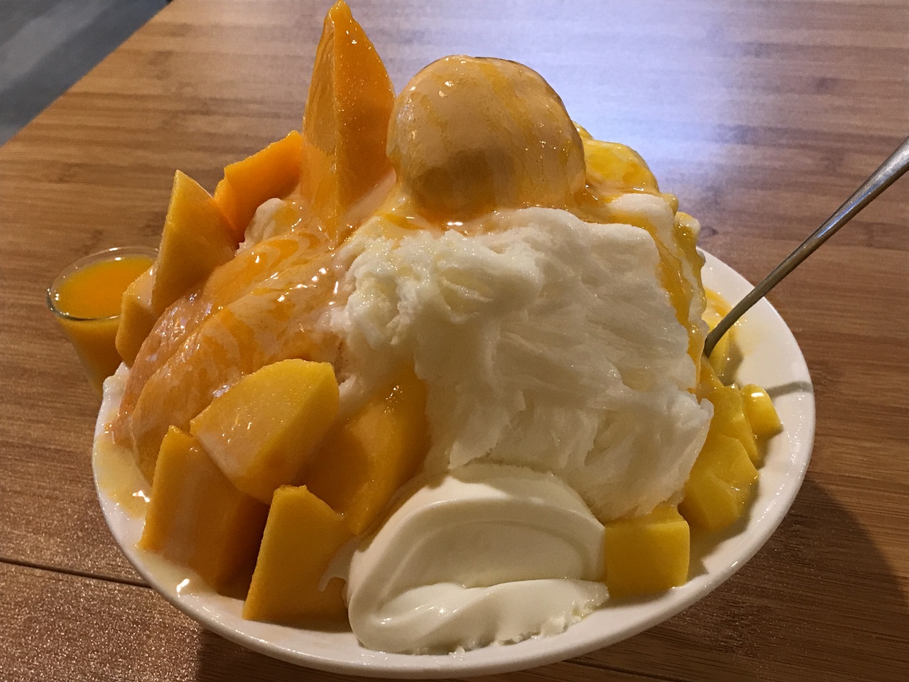 先ず芒果雪花冰、その大きさとマンゴーの量にビックリ!それにマンゴーはもちろんのこと、上に乗ってるマンゴーアイスも私好みで、今まで食べたマンゴーアイスの中で一番でした。