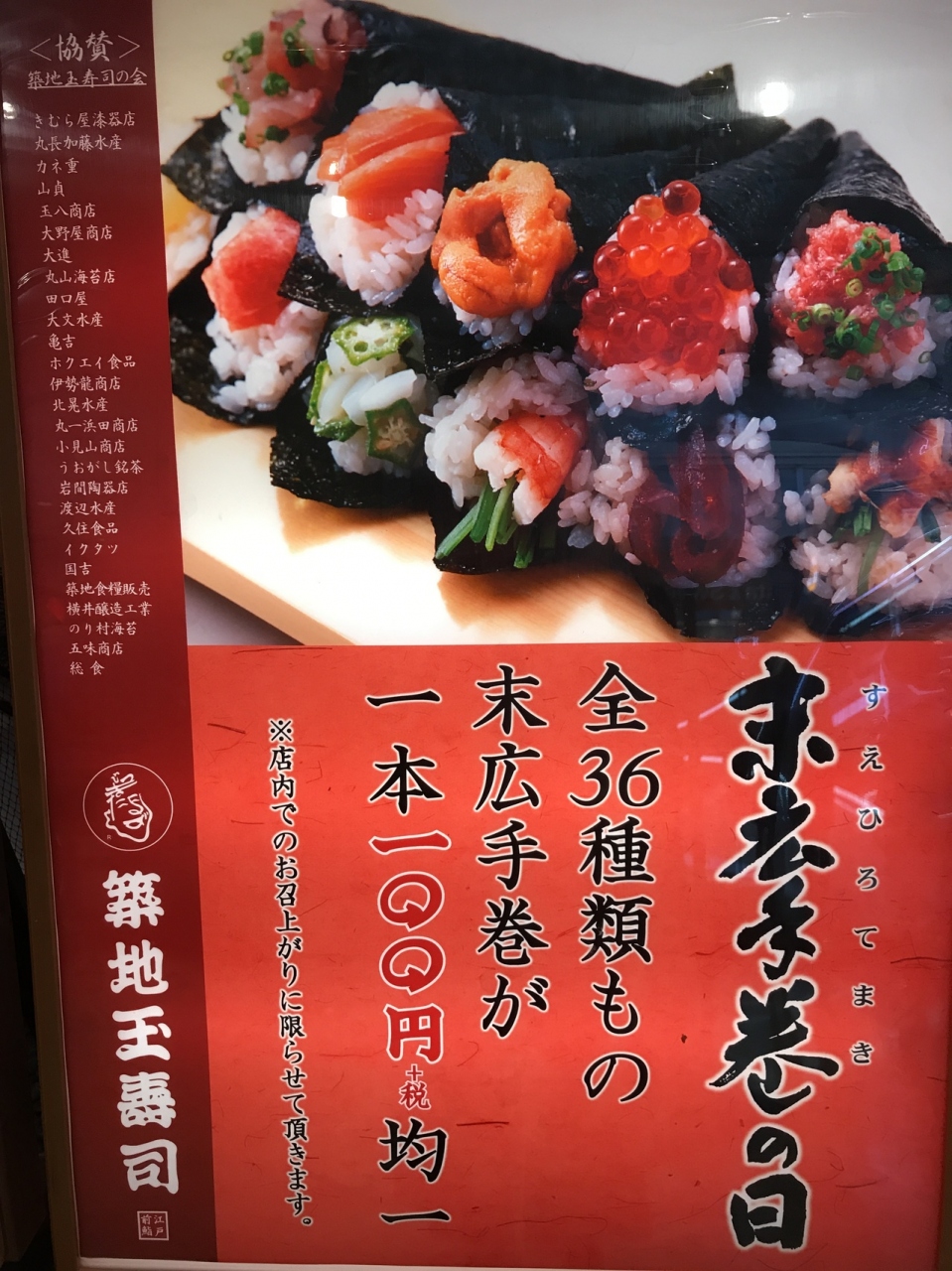 こちらでは毎月8日(日にち変動あり)が36種類の手巻きが一本100円になります!