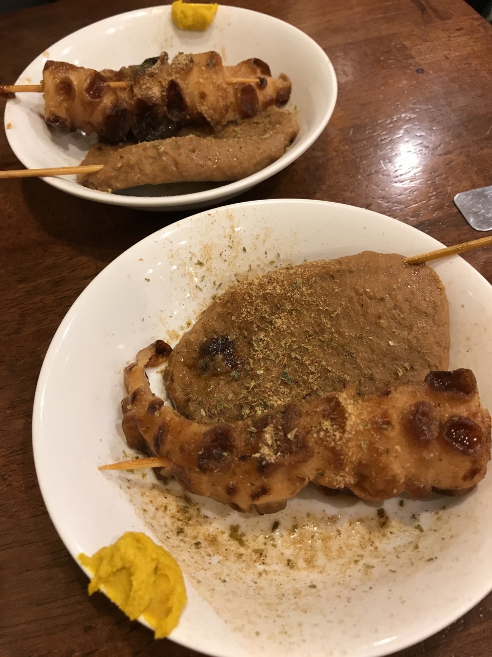 焼き鳥は一本80円、その他黒おでんやフライなどのメニューもほとんどが100円で、一本から注文出来ます。