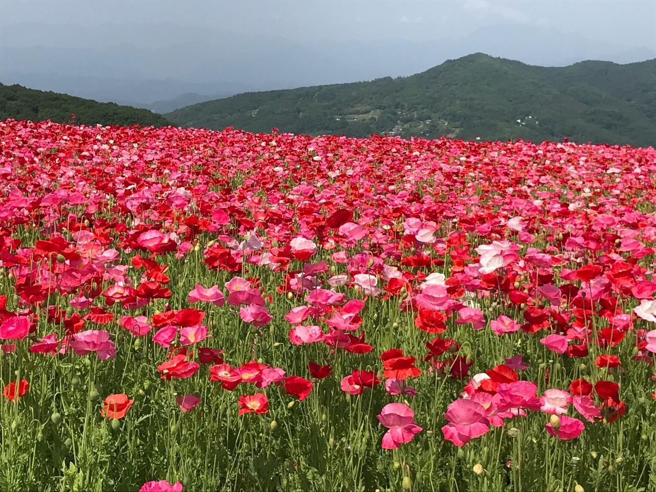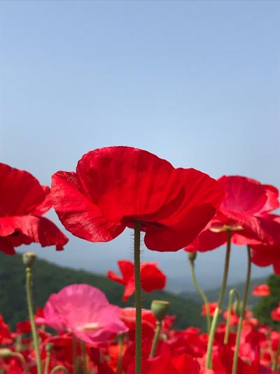 秩父皆野町の『天空のポピー』赤、朱色、ピンクやオレンジ、そして白、約1500万本のポピーが咲き乱れています。とても綺麗です。
