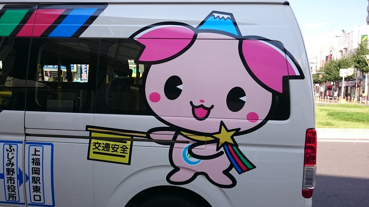 今年(2017年)の4月から運行が開始された市内循環ワゴン『ふじみん号』大人は距離に関係なく一回乗車で200円です。こちらの方面にはよく行く機会があるのですが交通の便が悪くタクシーを利用するしかありませんでした。それがこのふじみん号運行のお陰でとても便利になりお財布にも優しい環境になりました。車体もゆるキャラ『ふじみん』でラッピングされて可愛く、乗り心地も良いです。運転士さんの対応も丁寧です。