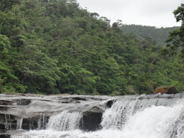 地元の方は足腰がなれていらっしゃるのかあまり「大変な道」という話は聞きませんが、実際は、西表のほかの山道ほどではないにしても歩幅ではたりない岩を飛び降りたり登ったりと結構足場の悪い道が続き、言うほど「気軽に参加できる」コースではありません。3、4歳のお子さんを連れた若いママが苦労されていました。