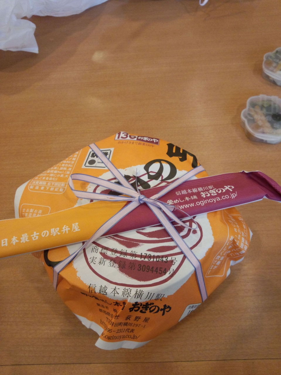 私は「峠の釜めし」を選択。やっぱり碓氷峠越えではこれを食べたくなりました。「たかべん」さん、ごめんね。- 旅行時期