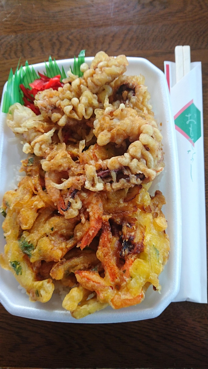 人気商品はかき揚げ弁当。。お客さんの多くが注文していました。