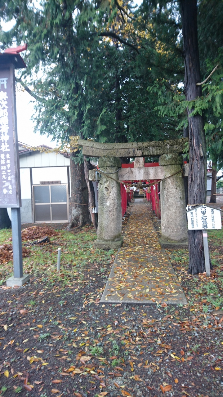 江戸時代、秋田と江戸の間を6日間で往復したという早足の飛脚、与次郎を祀った与次郎稲荷神社にある石鳥居です。