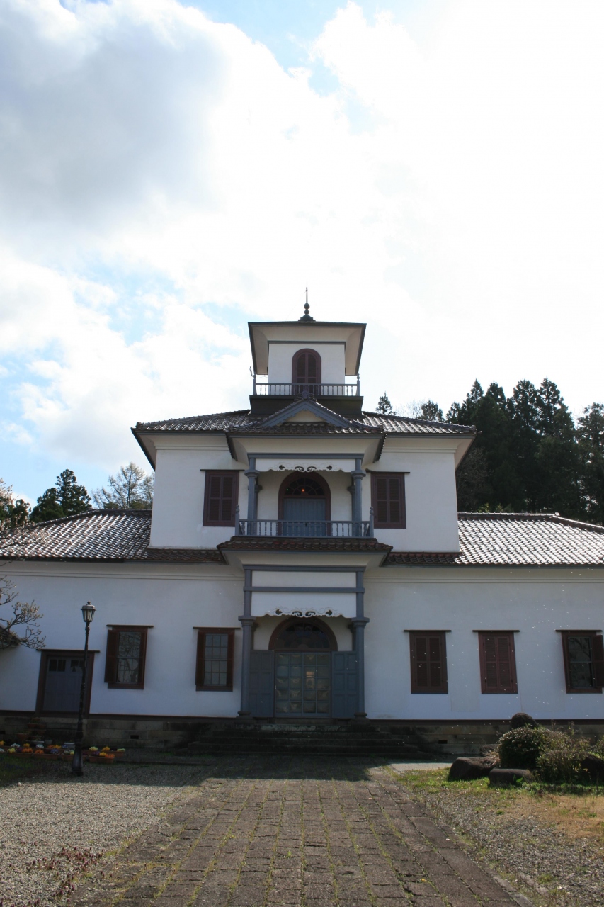 天童市の舞鶴山(天童公園)の西側にある、明治時代に建てられた歴史的建造物(洋館)。山形県には役所として使われた古い洋館が結構のこっていますが、その一つです。