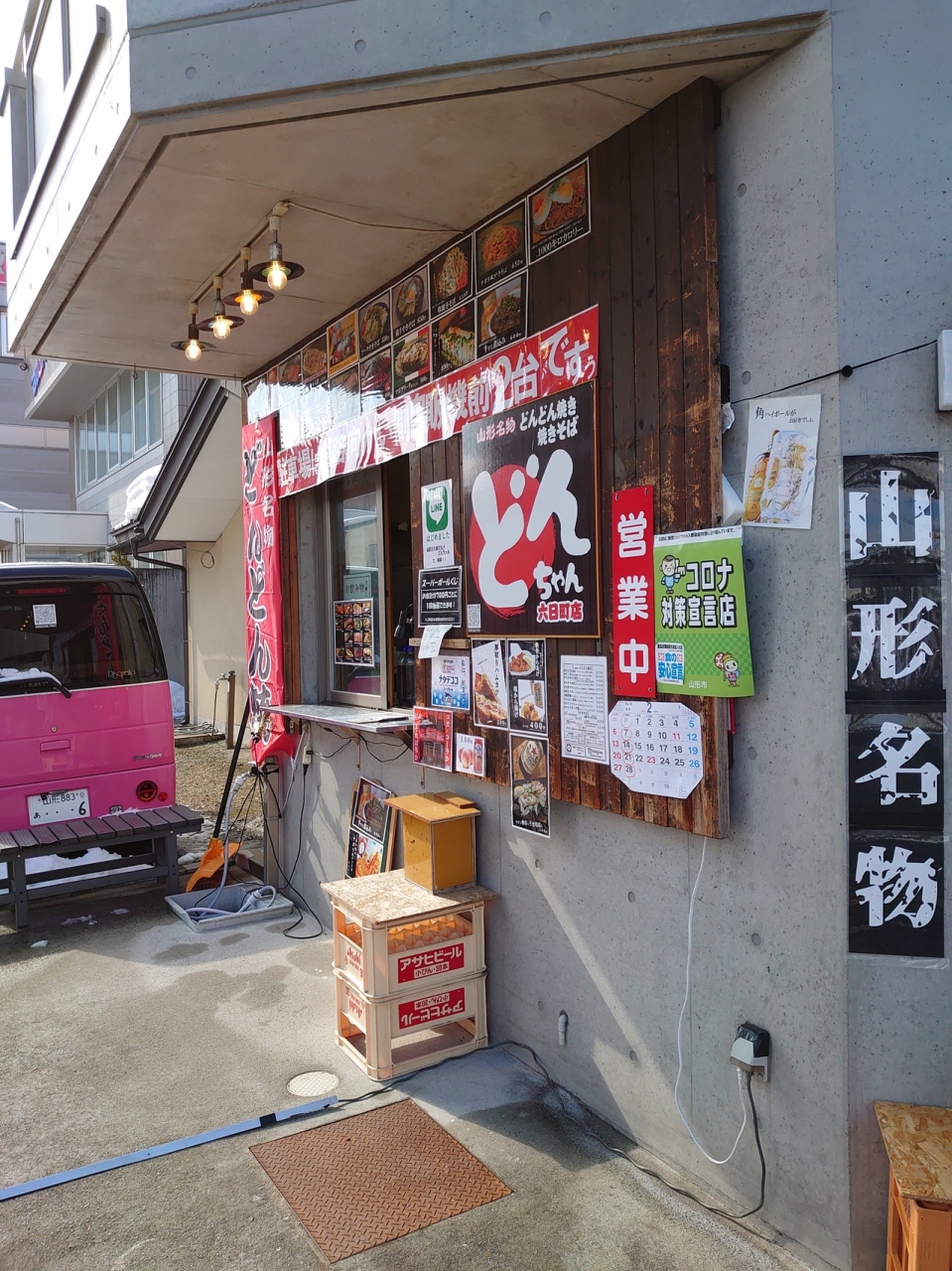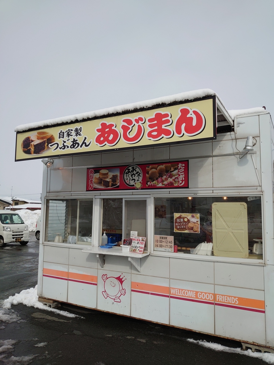 山形市内のホームセンターの駐車場にある、「あじまん」の店舗です。
