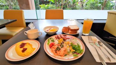 北側はアメリカンビレッジ~嘉手納町、南側は北谷~那覇近郊の夜景が楽しめ、さらに週末は北側ベランダから花火が楽しめる、本島屈指の夜景スポットです。朝食は品数が多く、連泊しても飽きません。