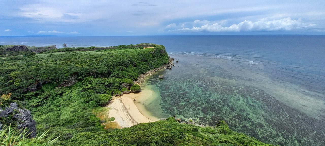 バンタとは沖縄の方言で「崖」という意味で、約120メートルある崖から見下ろす驚くほど透明感が強いエメラルドグリーンの海です。