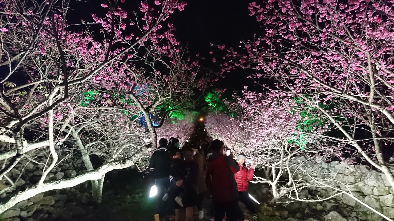 2月の期間限定で開催されている、今帰仁城跡の夜の桜まつりに行ってきました!