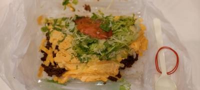 とくにサラダコーナーにあるトマトとチリソースがとても美味しかったです。タコライス風味でした。
