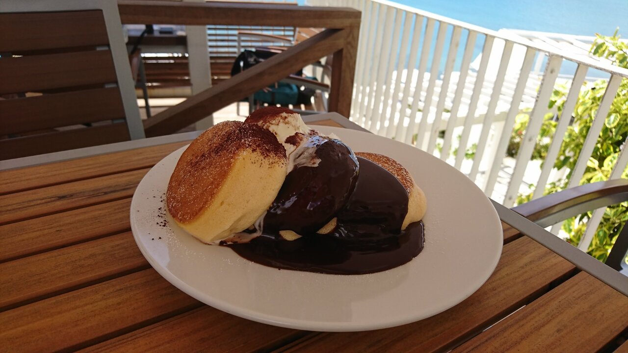 海を見ながらのパンケーキは最高でしたね!暑かったけど(笑)- 旅行時期