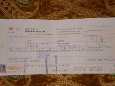 +必要事項条件は券面上の中央部ICE23とICE24行きの日にちと時間指定、経路指定(パッサオ経由、この場合ミュンヘン経由変更は基本的に不可、列車延着上の事前許可で変更は可能になるかもしれませんが面倒です)ここまでが最低必衰条件、そしてリンツ、ウィーン経由、私は最初リンツ乗換えで手配しましたが、延着で乗り継ぎ不可になり、ブダペスト行き本数の多いウィーンまで同じICE23で行きました。延着の場合路線上での列車変更は指定列車以降は可能です。延着証明、検札印を必ず受けてください。- 旅行時期