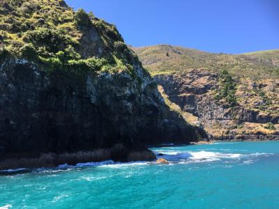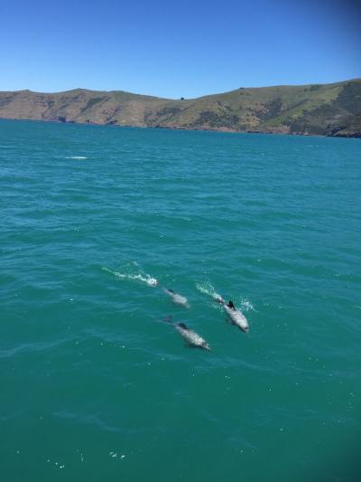 アカロアで、イルカを見る船に乗りました。近くにイルカがたくさん近寄って...