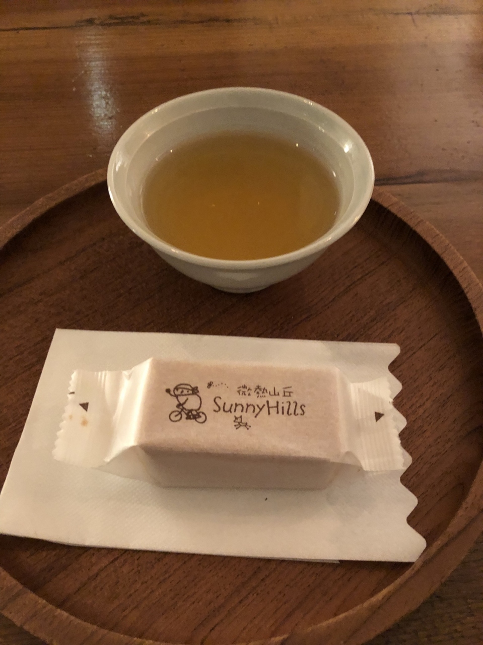 温かいお茶と一緒にでてきて