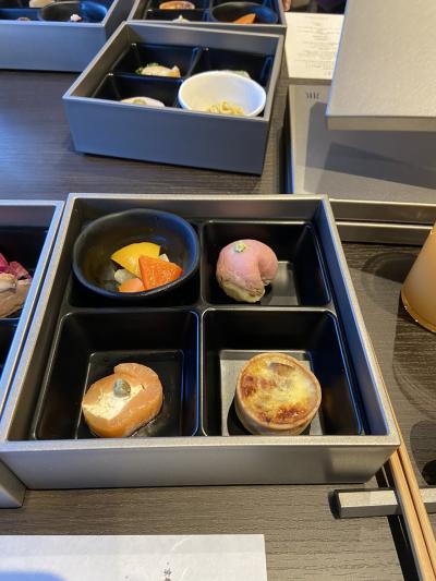 朝食は3段重のお重で提供されます。