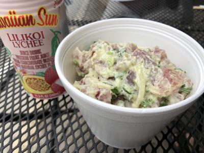 ボリューム満点ですが、あっさりしていて酢飯ですので結構食べられます。大盛にすればよかったです。カイルア行ったら、ここはもう外せません。- 旅行時期