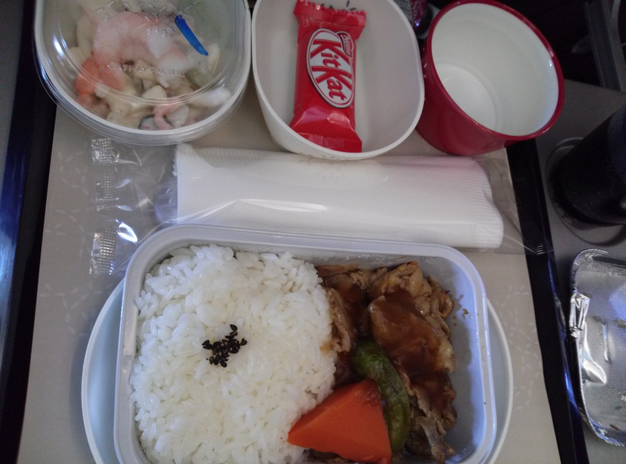 どちらもチキンや、野菜にもちゃんと味がついていて、4区間ともとてもおいしくいただきました。通常の機内食も友人のものを味見させてもらいましたがそれもとてもおいしかったです。設備も映画、音楽沢山ありますが、日本のものがほとんどありません。飛行時間が短いので全然苦になりませんでした。キャセイパシフィック航空、とても気に入りました。追伸、特別食は、通常食より相当早く来ます。一般の機内食が配られるまでちょと気まずいです(笑)- 旅行時期
