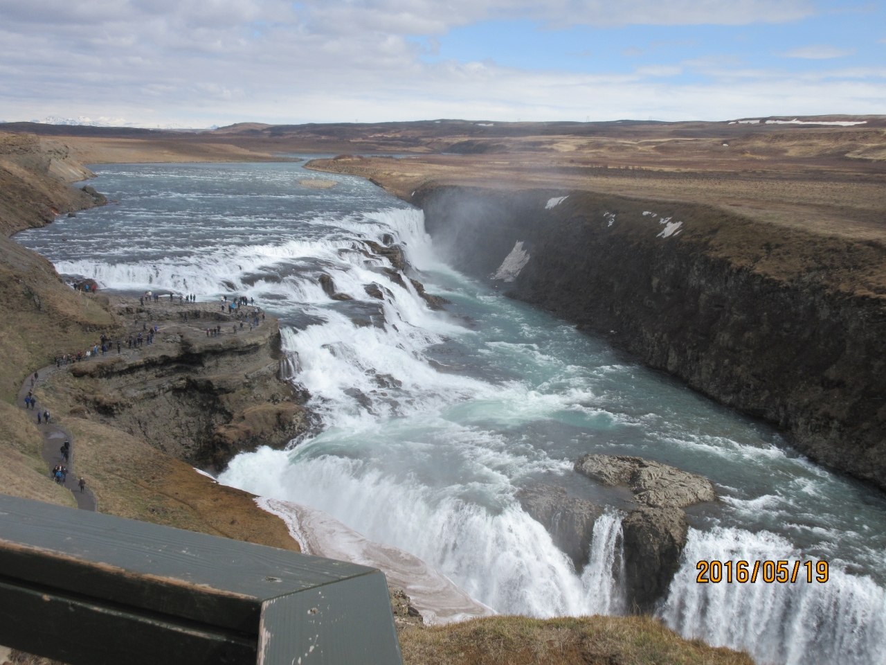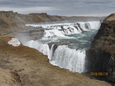 お天気がいまいちですが、巨大な滝です。滝の水は氷河から流れてきているので