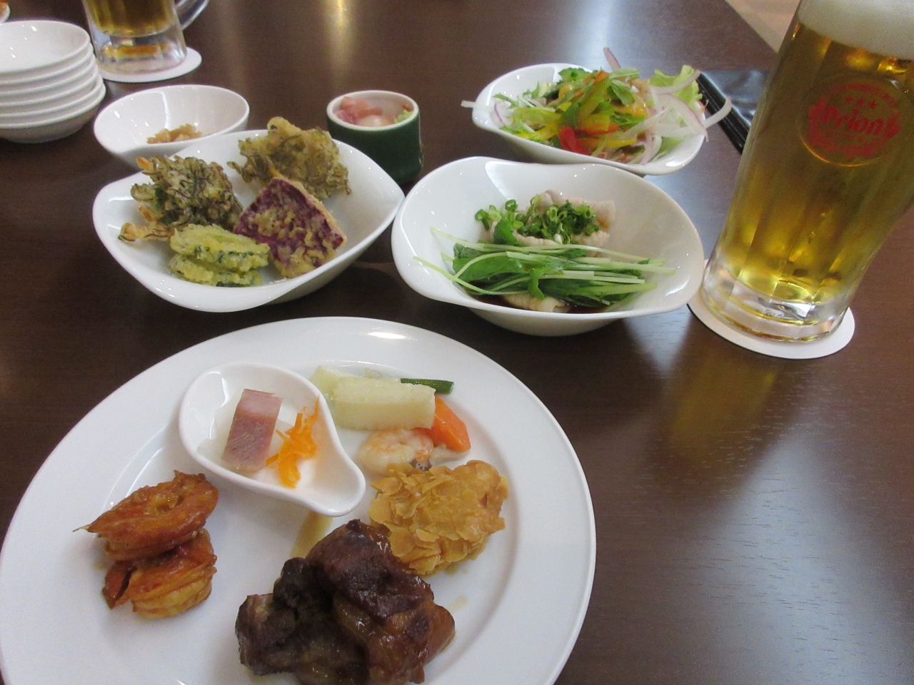 夕食はウミカジテラスに行きましたが、お店がほとんど閉っていて、沖縄なのに旭川ラーメンを食べました(笑)味はおいしかったです。朝食はタコライス、冷たいぜんざい、ゴーヤのてんぷらなど沖縄らしいメニューから、自分で好きな具材を注文して作ってくれるオムレツなど。小学生の子供が一緒でしたが珍しく朝食を何杯もお変わりしました。また、こちらの温泉施設は広くて、ツボの形をしたバスタブなど楽しかったです。ロビーから慶良間諸島が見え気持ちが良かったです。次回沖縄に行くことがあったらまた泊まりたい一つです。- 旅行時期