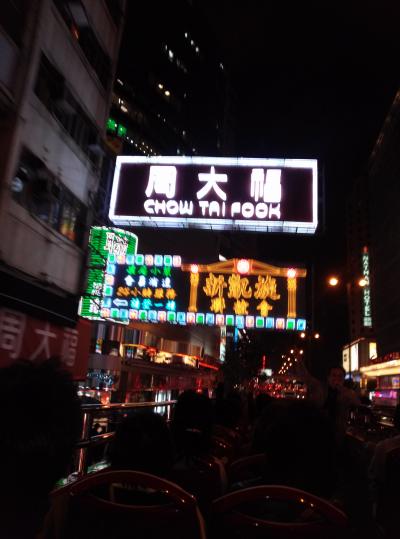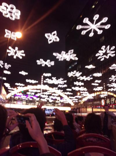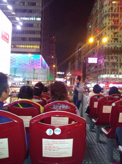 ちょうどクリスマスシーズンに入った為、街中がイルミネーションで大変きれいでした。オープントップバスで途中、ジェットコースターのようにぐるぐる回ってぶんぶん飛ばしてガイドさんも機関銃のような日本語を話し(笑)私たちもギャーギャー言って楽しみました。その後、ネオン街を通り抜け、写真のベストスポットですと言われて止まった場所の看板のネオンが全くついておらず、よくガイドブックに載っているネオンサインの下での写真撮影は全く取れませんでした。(建物の足場ばかりが移ってしまいました(笑))女人街では40分位の自由散策でしたが、夜になるにつれ人が沢山、もみくちゃ、まったく身動きできず、スリに合うのではないかと相当心配しました。トイレも公園の中に一か所しかなく、真っ暗でとても行ける雰囲気ではありませんでした。面白い雑貨は沢山ありましたがそういうわけで、昼間に来ておけばよかったと思う場所でした。雑貨が安く買える露天というイメージでしたが円安の為、料金交渉してもお得な感じがしませんでした。