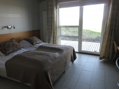作りはオーロラを見る人の為のホテルかと思いますが、白夜の時期の夏でもかなりおすすめできるホテルでした。ホテル自体の作りはこじんまりしていますが、レストランには食後くつろげるソファーも、バーもあり、部屋もきれいでした。夕食はビュッフェでしたが、アイスランドの郷土料理もありおいしかったです。朝は6時前から外に出て、1時間以上散歩しました。聞いたことのない鳥のさえずりや、一台も通らない道路をひたすら歩き、朝食前にとても気持ちが良かったです。次回来るときは絶対こちらは外せないホテルになりました。