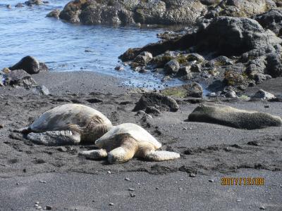 黒砂海岸なので砂は黒いですし、海も、ハワイのエメラルドグリーンではありません。ただ、頻繁にホヌが日光浴に来たり、私が行ったときはクジラも来ていて潮を吹いていました。沢山写真を取りました。ハワイ島に初めて行く方にはぜひ行っていただきたいスポットです。このビーチの途中で有名なパン屋さんがあります。そちらに寄ってこちらのビーチへ行ってみてください。ただし沢山のホヌがいますが、ホヌ保護の為、近寄ることができません。ご注意ください。