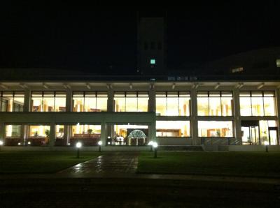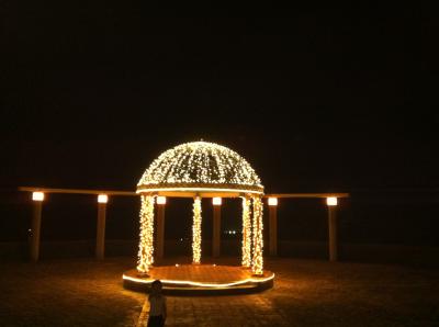 食事の会場の外(庭)に、夜にはライトアップされるかざり?があって、とてもきれいだった。