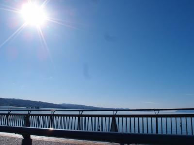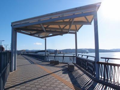 車窓から眺める宍道湖も良いですが、せっかくならじっくり見てみたいと車を置いてから中ほどにある休憩スペースまで歩きました。橋のたもとからそれほど遠くはありません。