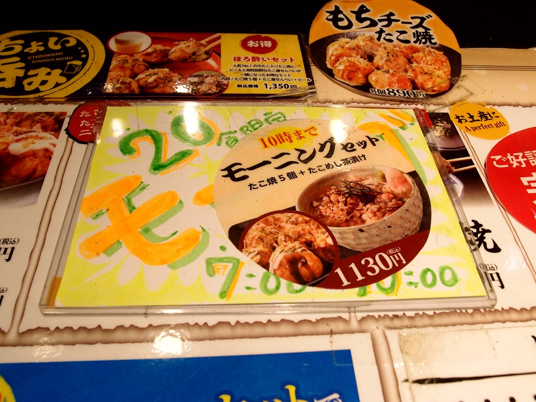 ちょうど、少量のたこ焼きとたこめし茶漬けがいただけるモーニングセットがあり、注文しました。